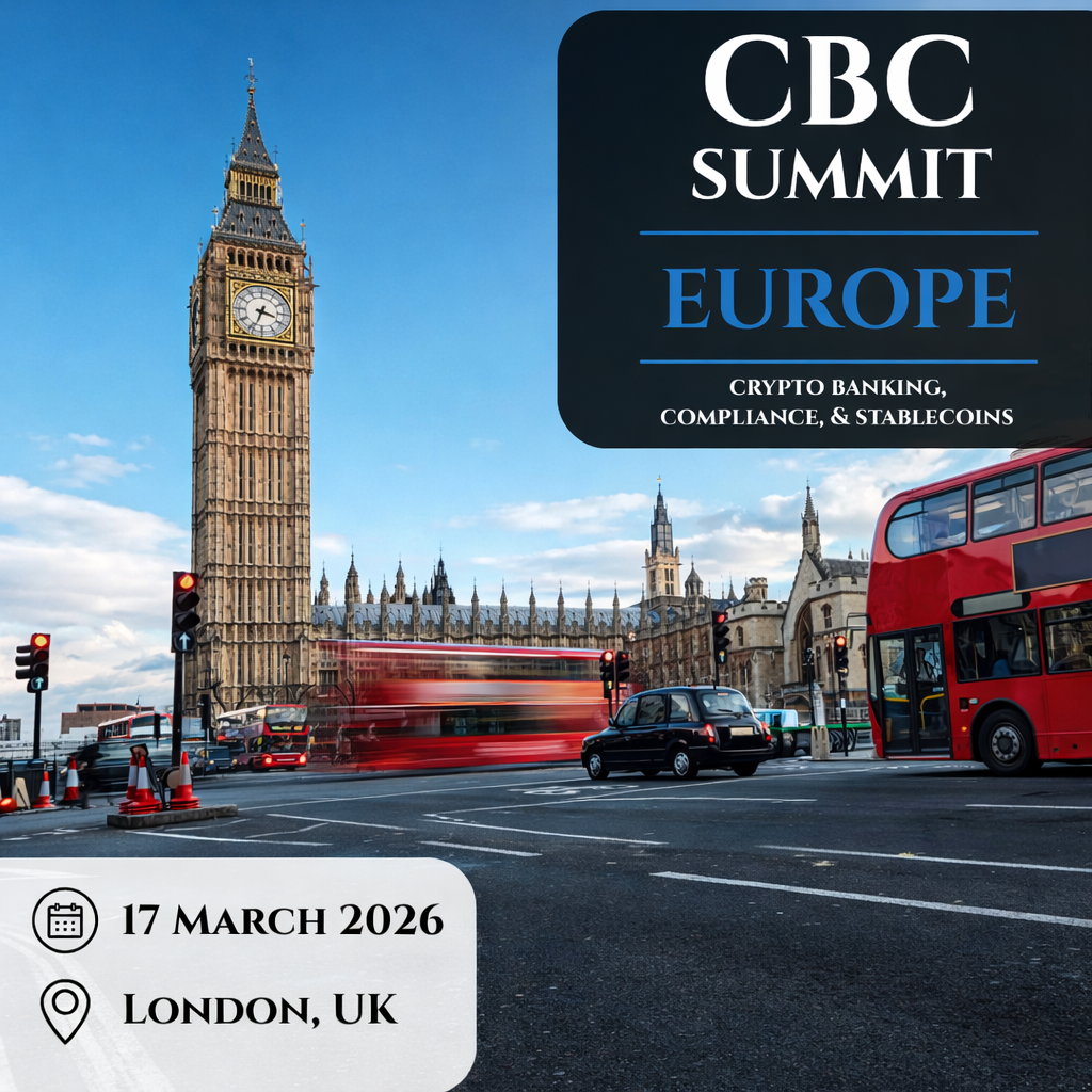 CBC Summit Europe: 17 March 2026, London. Executives and regulators address crypto banking, compliance, stablecoins via panels, keynotes, networking. 100+ attendees, 50+ companies, 20+ speakers.