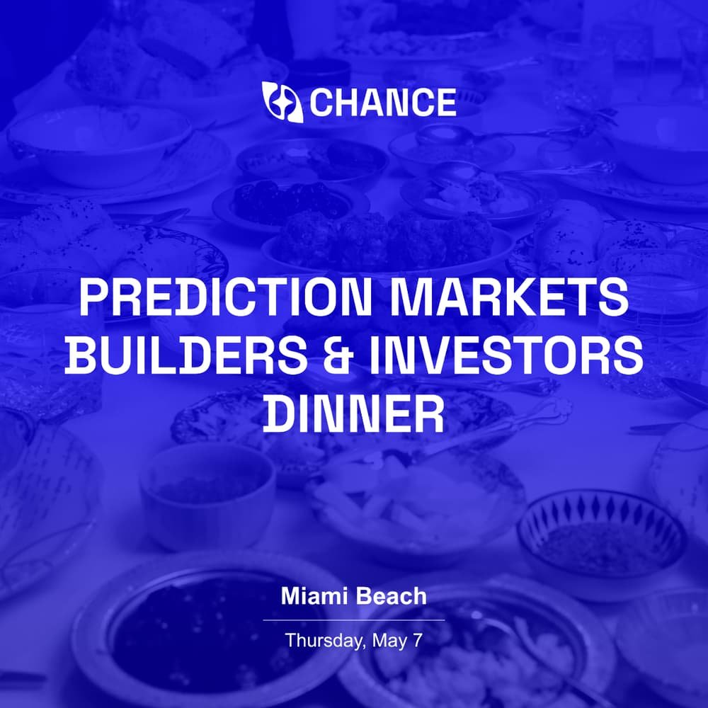 The Prediction Markets Builders & Investors Dinner is a small, invite-style evening in Miami for founders, builders, and investors focused on prediction markets.