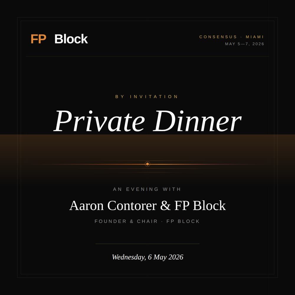 FP Block is hosting a small private dinner during Consensus Miami for founders, funds, and institutional builders working in on-chain finance.