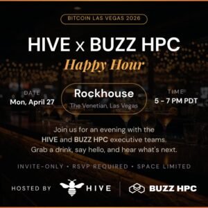 HIVE x BUZZ HPC Happy Hour is a private networking event taking place on April 27, 2026, from 5:00 to 7:00 PM at Rockhouse in Las Vegas, hosted by HIVE Digital Technologies and its AI subsidiary BUZZ HPC during the 2026 Bitcoin Conference. The gathering is aimed at CEOs, founders, and capital allocators working at the intersection of Bitcoin mining, high-performance computing, energy, and AI infrastructure. Both executive teams will be present. Attendance is by invitation and space is limited.