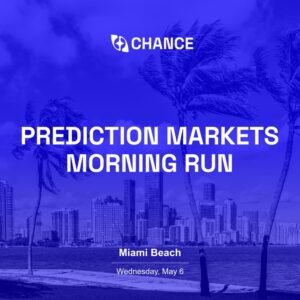 Prediction Markets Morning Run is a casual one-hour run taking place on May 6, scheduled alongside broader prediction markets programming in the area. The format is informal and open to all fitness levels. The run is designed for attendees who want to connect with others in the Web3 and prediction markets space before the day’s main events begin. Participants can expect a relaxed social atmosphere with merch available on the day.